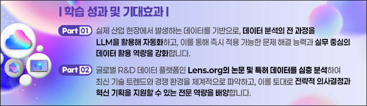 [Stage 05] 키워드로 핵심만… 논문·특허 데이터 정제 - 저자명, 기관명 표준화의 필요성과 정제 방법 - 특허 텍스트 데이터의 특수성(권리청구항, IPC 코드 등) - 기술 키워드 추출과 주제어 분석 기법(NLP 기반) - 실습: AI로 메타데이터 정제 및 표준화(기관명 통일, 중복 제거) - 실습: 주요 키워드 및 주제어 자동 추출 - 실습: 연구 분야별 클러스터링과 핵심 기술맵 도출 |
