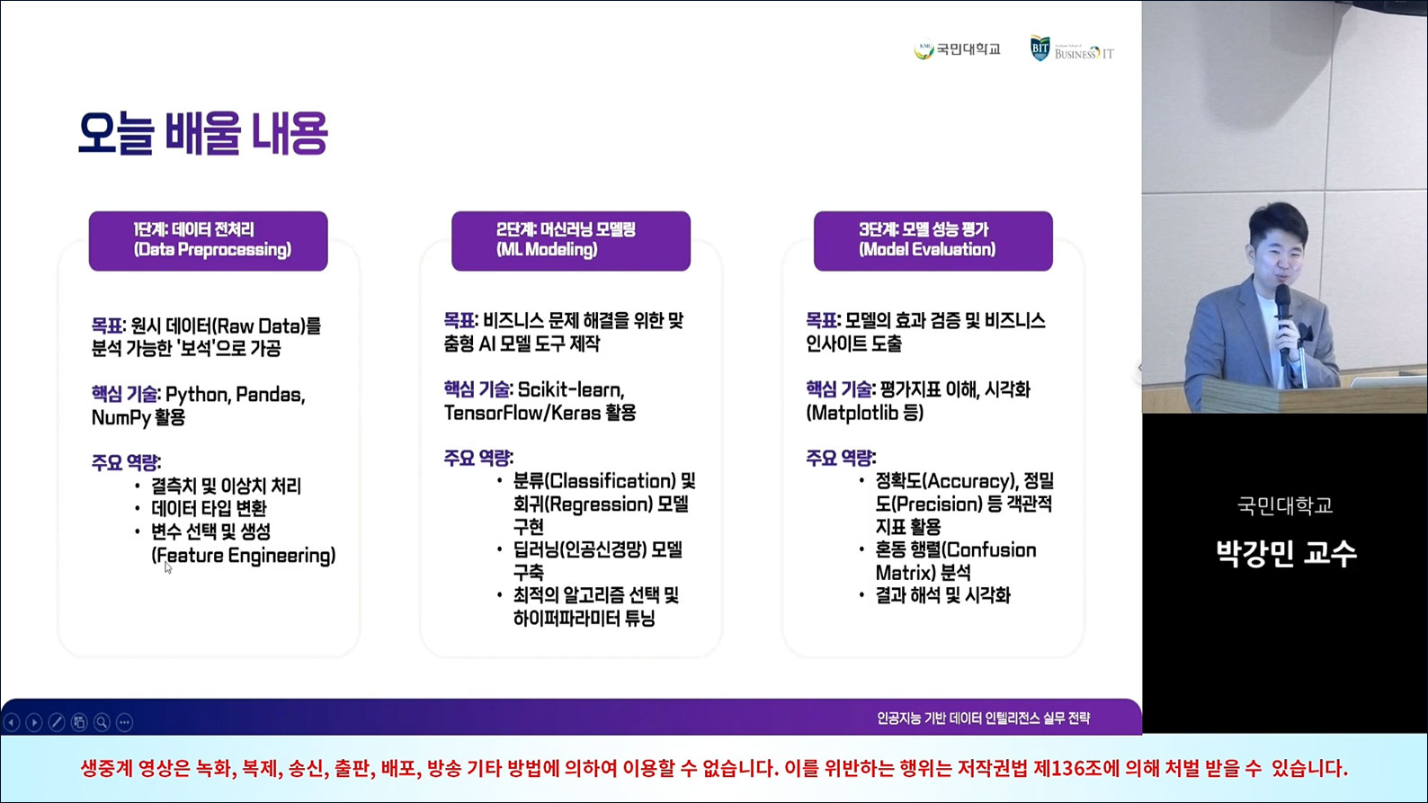 [Stage 02] 데이터 깨끗하게 만들기… 전처리 자동화 - 데이터 품질이 분석 결과에 미치는 영향 - 결측치, 이상치, 중복 데이터 처리 전략 - 범주형 데이터 인코딩, 스케일링 등 전처리의 핵심 기법 - 실습: AI 자동 코드 생성기를 통한 결측치 보간/삭제 시연 - 실습: 이상치 탐지 및 처리(통계 기반, 머신러닝 기반) - 실습: 텍스트/범주형 데이터의 표준화 및 인코딩 자동화 |
