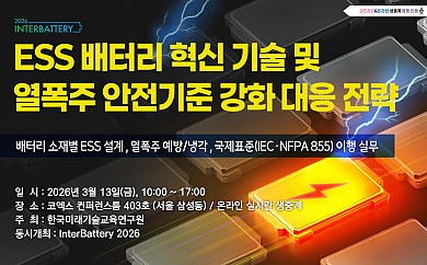 2026 NFPA 855 ESS 안전기준과 설비 설치에 따른 표준 적용 방안 - NFPA 855 고정형 ESS 설치 표준안 - 'UL9540A' 및 배터리외 설비(BOS) 기준 강화 내용 - 각 사업장별 기존 안전설비의 추가 설치 및 기준 보강방안 |