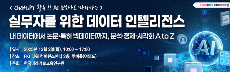 [Stage 06] 기술 트렌드 한눈에… 시각화와 리포트 만들기 - 기술 동향 분석의 시각화 방법: 연도별 추세, 네트워크 그래프, 토픽맵 - 트렌드 리포트 작성 시 핵심 구성요소(시장성, 연구 집중도, 경쟁 상황) - 원페이지 보고서 및 대시보드 자동화 트렌드 - 실습: AI 기반 시각화 툴로 연도별/국가별 연구 추세 차트 생성 - 실습: 협력 네트워크(공동 저자·기관) 그래프 자동화 - 실습: 자동 리포트 생성기를 활용한 원페이지 보고서 완성 |
